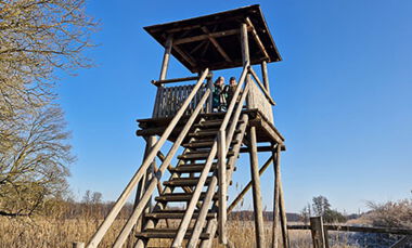 Mönchbruch 19. Januar 2025: Minus 4° zeigte das Thermometer bei herrlichem Sonnenschein an, als wir uns auf dem Mönchbruchparkplatz zu unserer Winterwanderung trafen.