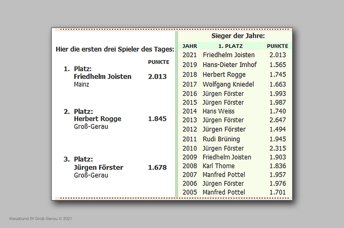 16. Groß-Gerauer Preisskat / Spielnachmittag